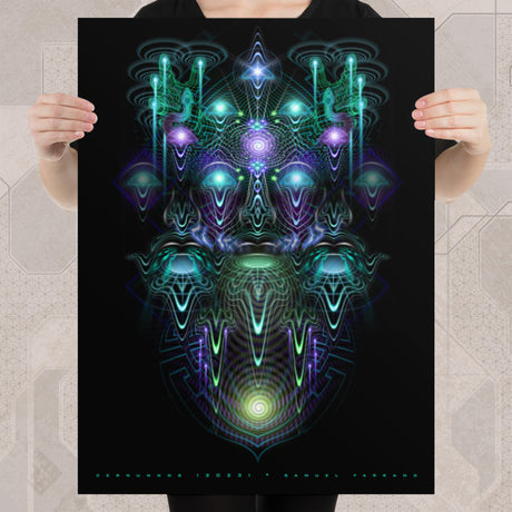 This psychedelic tapestry is built for long-lasting impact—indoors or out. Made in the USA from recycled plastic bottles, it features a lightweight knit fabric with triple-stitched edges for added durability.