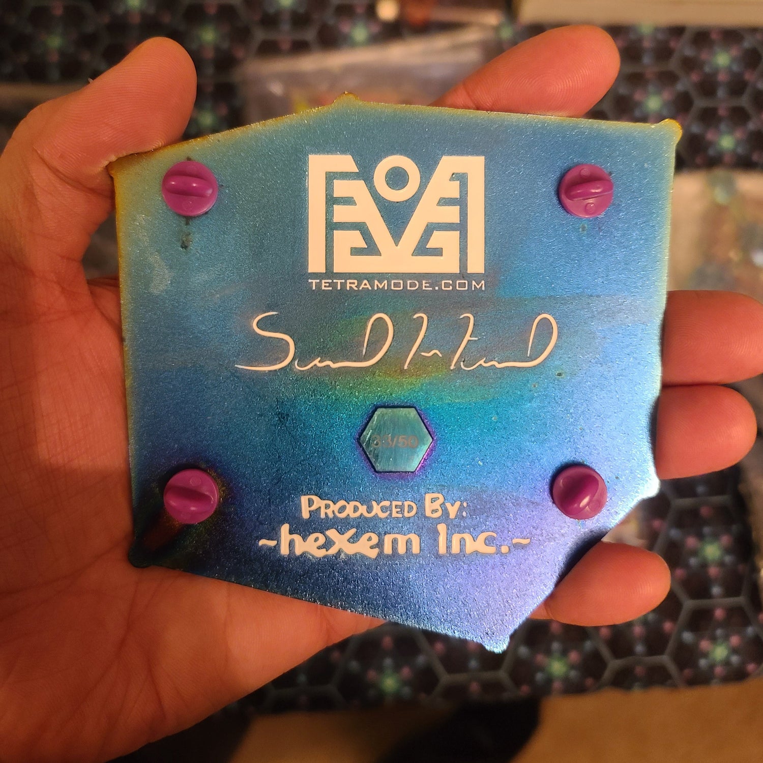 Straight from the Artists personal Collection! These are the last 2 of these that exist! This pin was produced by the skilled & talented team of Hexem-Inc by painstakingly taking the original art and turning it into one of the most complex vector graphics you can think of. The vectors were sent to Hexem-Incs exclusive private manufacturer who then cast a metal-alloy mold using the vector image. Each pin is then anodized using 4 different finishes. Each cell was then painstakingly filled with enamels. The variety of enamels that are present on each pin includes opaque, semi-opaque, UV Glow, After Glow, Screenprint (creates a raised 3D effect) & Glitter enamel. To finish off these pins, each pin is sealed in a layer of epoxy to protect and enliven the enamels. Humbly speaking these are the most advanced pins to hit the pin collecting world. The final product is absolutely speechless, we can assertively say we have never seen anything quite like it. The pins looks like it came from some other planet and is the most psychedelic object we have ever seen!