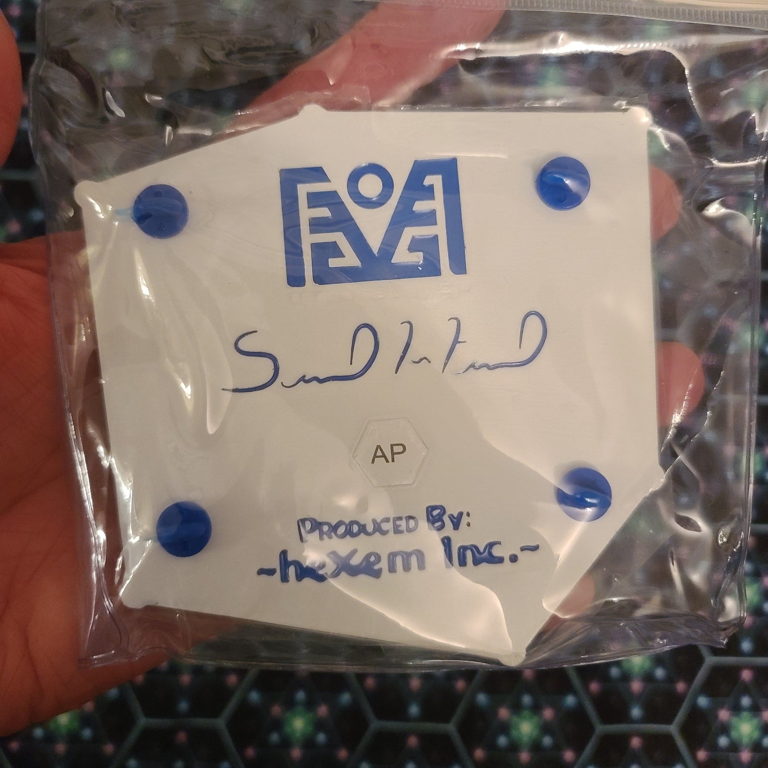 Straight from the artists personal collection! This has been made available for the serious discerning pin collector, this is the only Artist Proof that has ever been made available to the public, the other one is in Samuel Farrands Private Collection! This pin was produced by the skilled & talented team of Hexem-Inc by painstakingly taking the original art and turning it into one of the most complex vector graphics you can think of. The vectors were sent to Hexem-Incs exclusive private manufacturer who then cast a metal-alloy mold using the vector image. Each pin is then anodized using 4 different finishes. Each cell was then painstakingly filled with enamels. The variety of enamels that are present on each pin includes opaque, semi-opaque, UV Glow, After Glow, Screenprint (creates a raised 3D effect) & Glitter enamel. To finish off these pins, each pin is sealed in a layer of epoxy to protect and enliven the enamels. Humbly speaking these are the most advanced pins to hit the pin collecting world. The final product is absolutely speechless, we can assertively say we have never seen anything quite like it. The pins looks like it came from some other planet and is the most psychedelic object we have ever seen!
