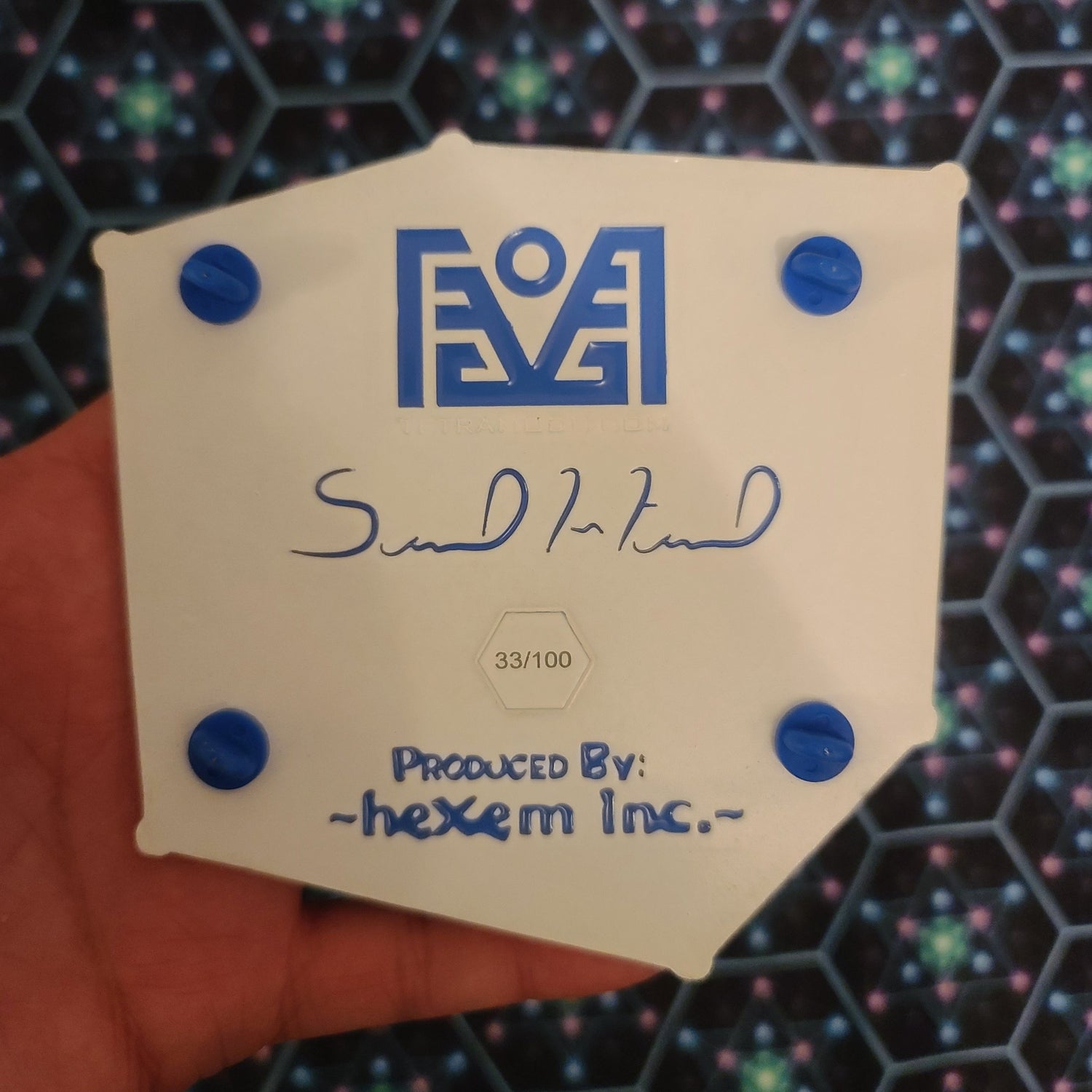 Straight from the Artists personal Collection! These are the last 2 of these that exist! This pin was produced by the skilled & talented team of Hexem-Inc by painstakingly taking the original art and turning it into one of the most complex vector graphics you can think of. The vectors were sent to Hexem-Incs exclusive private manufacturer who then cast a metal-alloy mold using the vector image. Each pin is then anodized using 4 different finishes. Each cell was then painstakingly filled with enamels. The variety of enamels that are present on each pin includes opaque, semi-opaque, UV Glow, After Glow, Screenprint (creates a raised 3D effect) & Glitter enamel. To finish off these pins, each pin is sealed in a layer of epoxy to protect and enliven the enamels. Humbly speaking these are the most advanced pins to hit the pin collecting world. The final product is absolutely speechless, we can assertively say we have never seen anything quite like it. The pins looks like it came from some other planet and is the most psychedelic object we have ever seen!